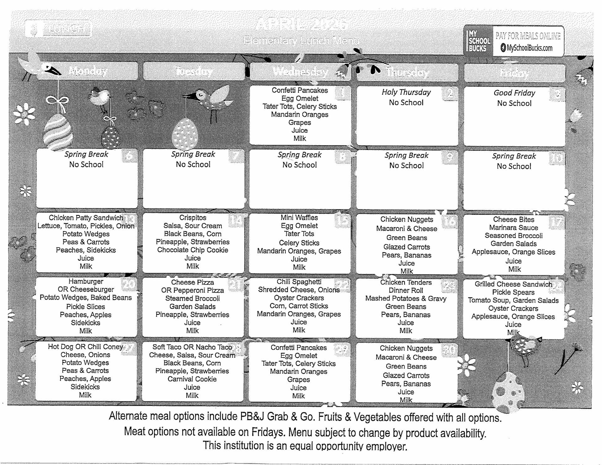 2026 April Lunch Menu
