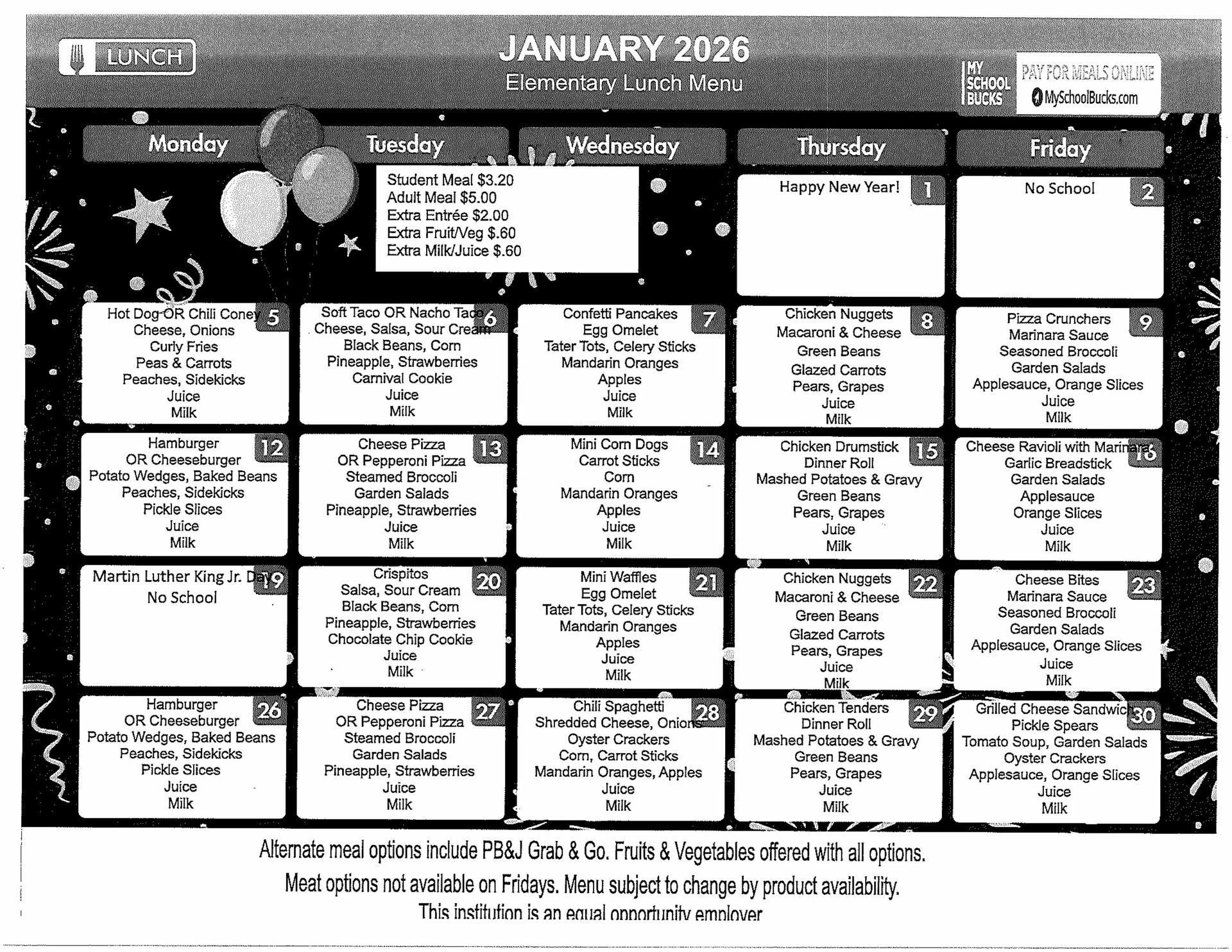2026 January Lunch Menu