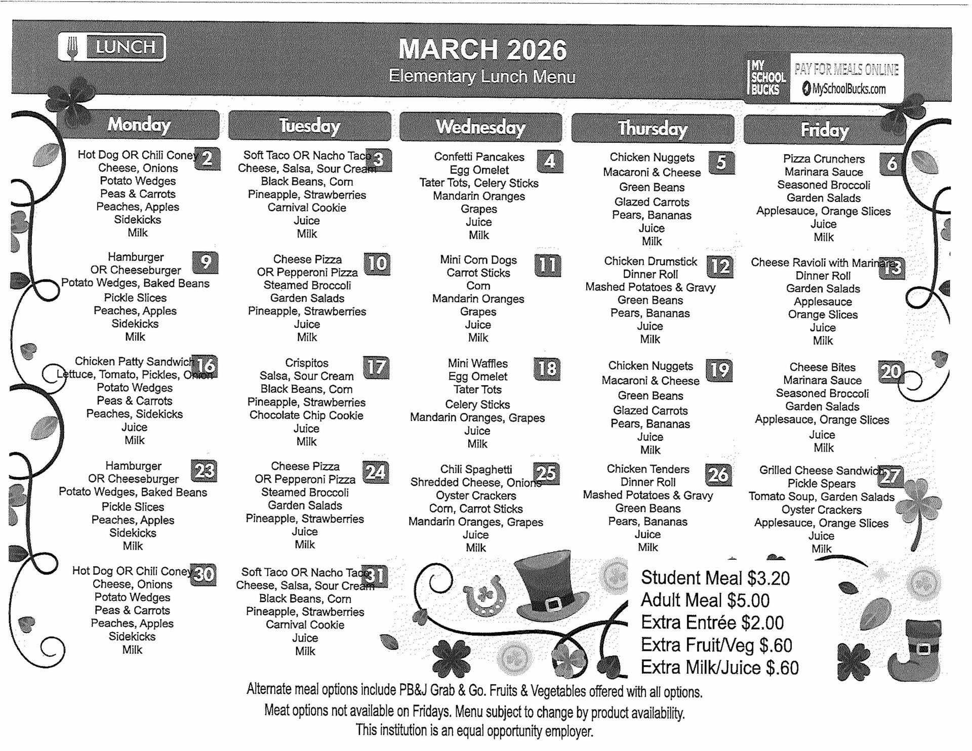 Student cost is $3.20 per lunch. (Updated price for 2025-26 school year)