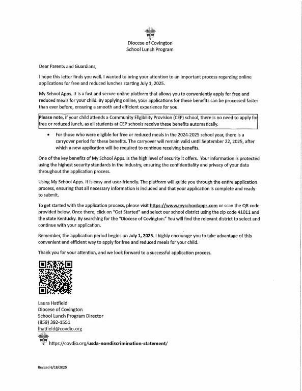 Information on My School Apps, an online application for free and reduced lunches for your child.