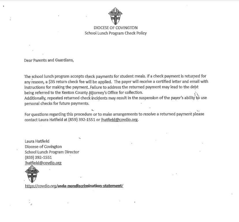 Returned Check Policy for the Diocese of Covington: